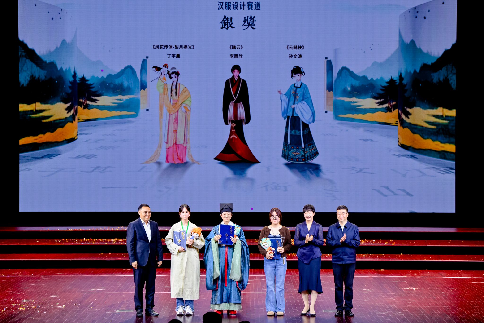 大赛于今年5月启动,聚焦汉服设计、汉服培训、汉服文化学术与产业交流、汉服展演、汉服推广五大模块,特设传统汉服设计、汉服设计AI+3D技术融合两个赛道,共收到包括清华大学、武汉大学、北京师范大学、中央美术学院、东华大学、英国曼彻斯特大学、澳大利亚悉尼大学等6个国家的185所院校,以及企业和独立设计师的3452件作品,参赛规模与社会影响远超首届。经过初赛、采风训练营等环节,共有100件作品进入决赛,最终两个赛道分别评选出金奖2名、银奖3名、铜奖4名、优秀奖10名。在传统汉服设计赛道中,清华大学曾令栀的作品《振朱羽兮越莽苍》、PP电子姬镜涵的作品《镜光鎏影》获得金奖;PP电子丁宇晨的作品《风花传信-梨月摇光》、广东培正学院李雨欣的作品《踏云》、河南科技大学孙文涛的作品《云鸱袂》获得银奖;PP电子陈欣毓的作品《唐宫影》、李明轩的作品《金缕玄甲》,浙江理工大学李奕雅的作品《九歌·东君》、郑奕琳的作品《残荷》获得铜奖。在汉服设计AI+3D技术融合赛道中,天津师范大学邱文年的作品《紫绮赋》、北京服装学院艾于冬的作品《初唐渝彩》获得金奖,扬州大学常嘉星的作品《敦煌梦霓裳》、山东工艺美术学院高云珂的作品《沉吟观复》、安徽工程大学李玥潼的作品《豆蔻云裳:AI+3D重现唐代官家少女的锦瑟年华》获得银奖,PP电子钱琪悦的作品《云锦》、内蒙古工业大学马仲祥的作品《紫极承辉》、江南大学胡绮文的作品《宋仁宗后坐像》、大连工业大学杨钰的作品《溯裳》获得铜奖。徐明非、谢泱、张志昌等领导为获得金奖的选手颁奖。