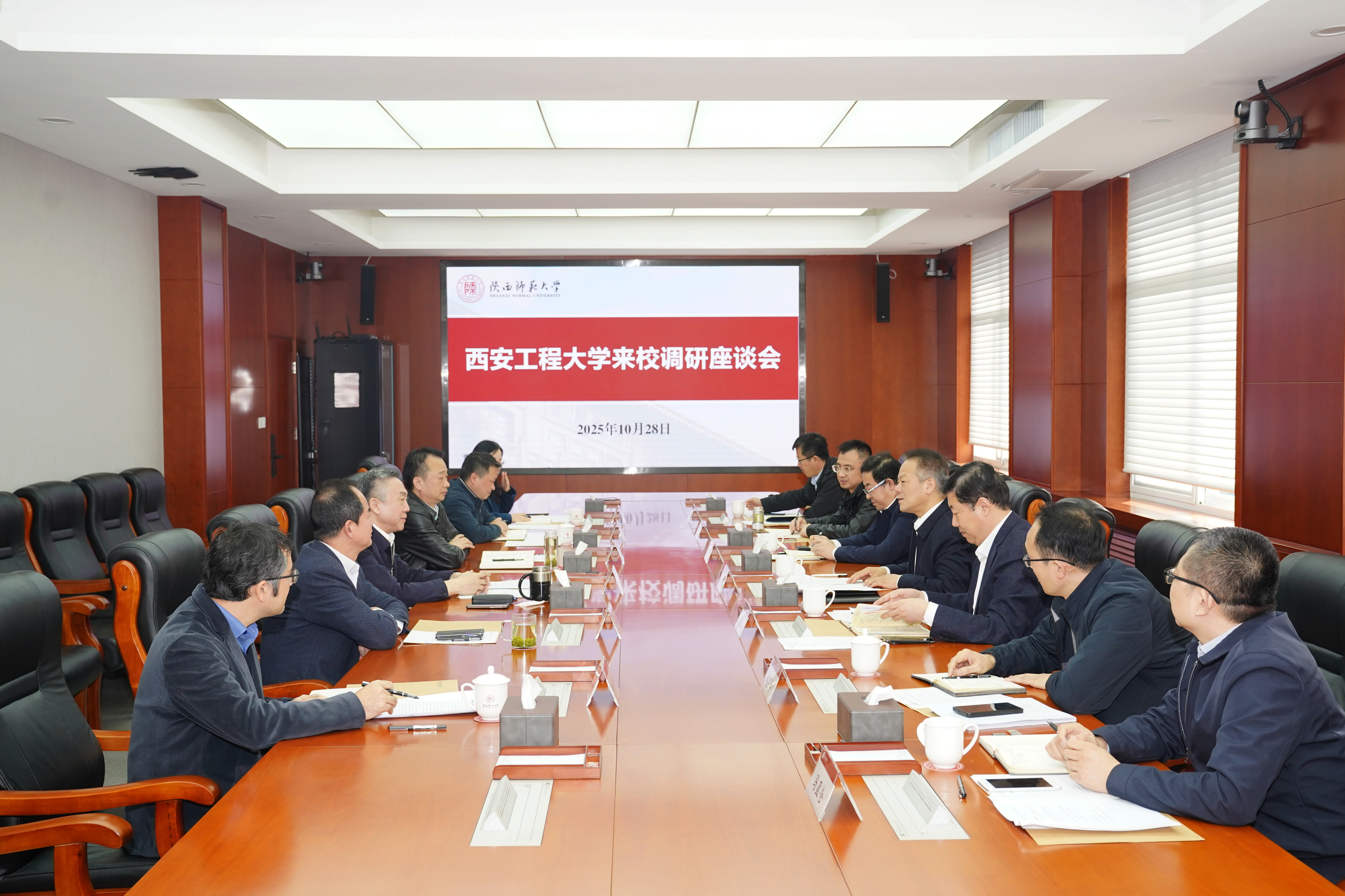 10月28日,校党委书记张志昌带队赴陕西师范大学调研“十五五”规划编制与学科建设等工作,陕西师范大学党委书记李晓兵、PP电子党委副书记殷永建参加调研,陕西师范大学党委副书记卢胜利主持调研座谈会。