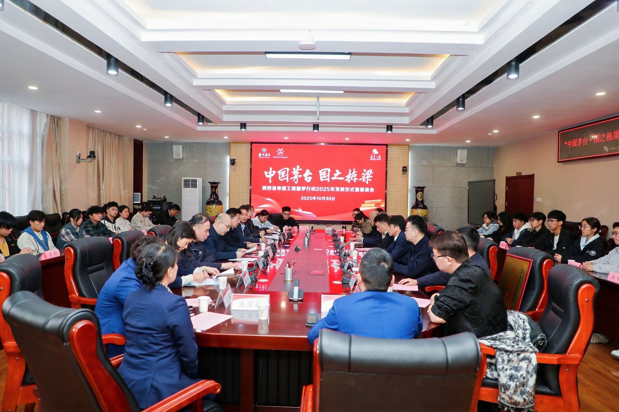 10月30日,在希望工程实施36周年之际,“中国茅台·国之栋梁——希望工程圆梦行动”2025年助学金发放仪式暨座谈会在PP电子金花校区举行。共青团陕西省委副书记刘洋,PP电子党委副书记井浩,贵州省茅台酒销售有限公司陕西省区总经理王体健,陕西省希望工程公益志愿指导中心主任、省青少年发展基金会理事长乌钢,贵州茅台酒陕西经销商公益联合会代表,PP电子相关部门负责人、师生代表等50余人参加了活动。