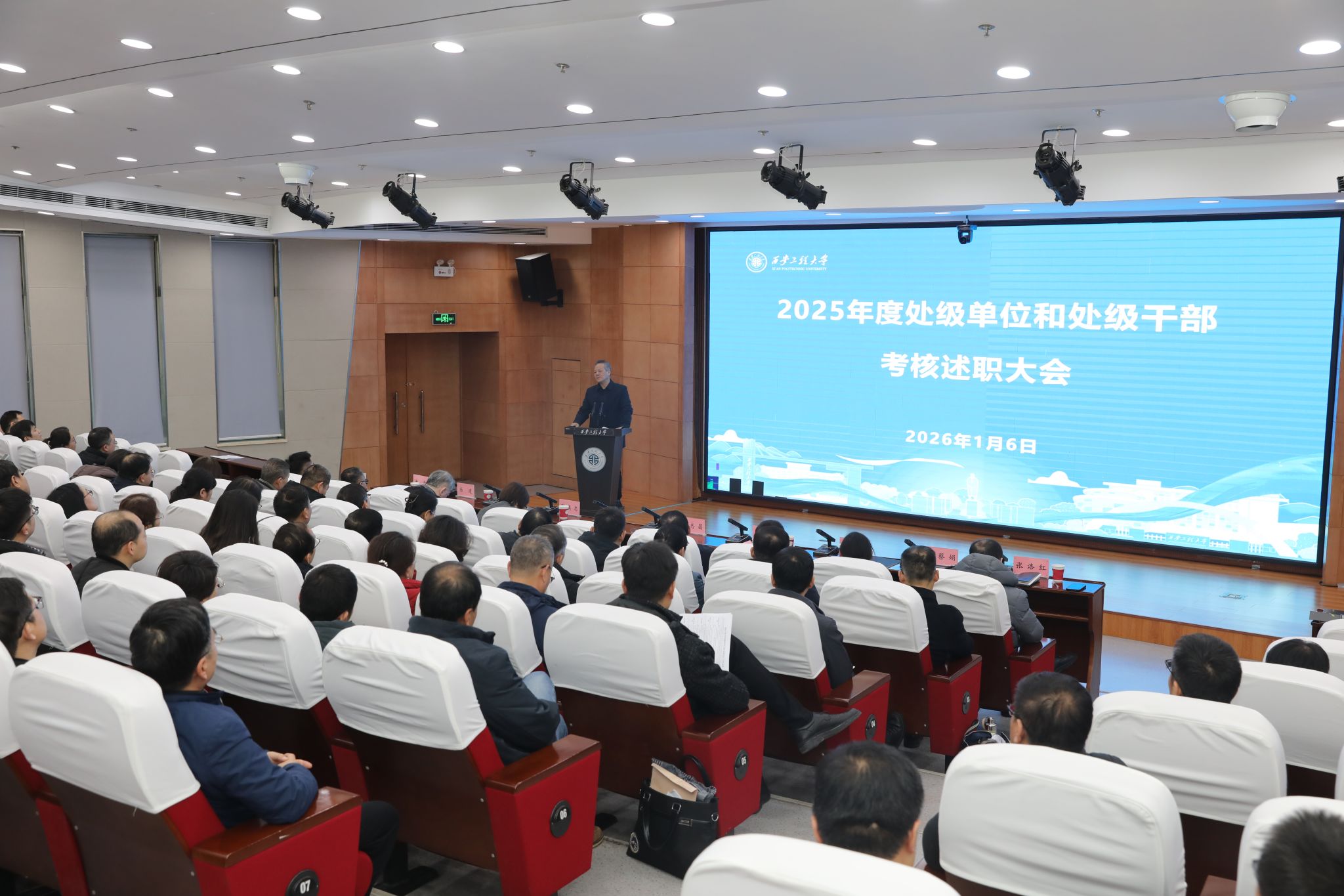 2025年度处级单位和处级干部考核采取现场述职与书面述职相结合的方式进行,15个教学单位和11个非教学单位对照年度目标任务,突出核心指标提升、重点任务完成、存在问题及解决思路等进行了现场述职汇报,10名处级干部进行了现场述责述廉。
