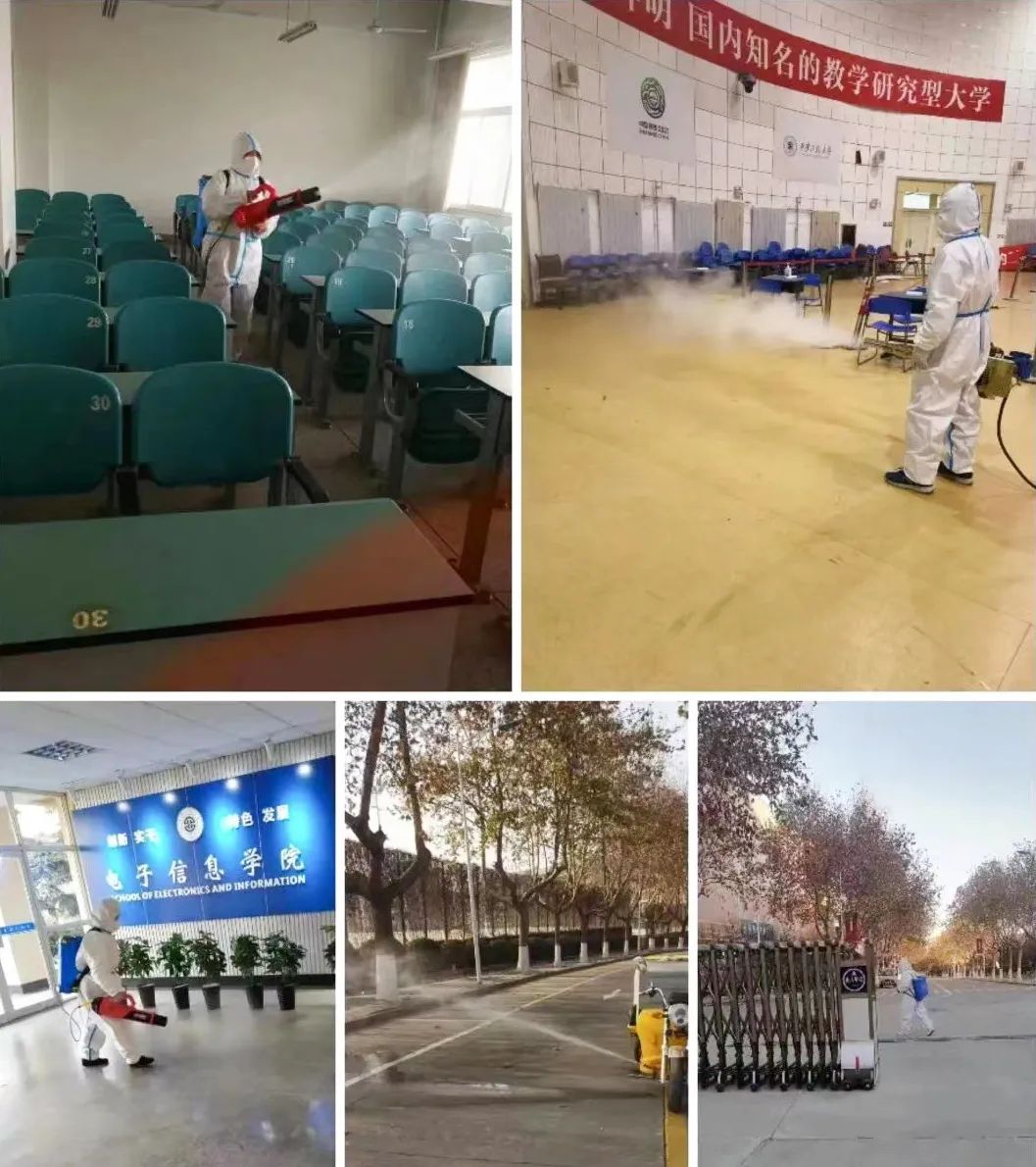 受疫情影响,可提供志愿服务的学生志愿者人数骤降到往年的一半,但是留校的60余名学生志愿者们克服困难、坚守岗位,提供考场送餐、流线引导等各类服务;为进一步织密疫情防护“安全网”,12月20日,后勤管理处联系校外专业消杀公司进校,会同校医院对临潼校区部分公寓学生密集楼层、教学楼、行政楼、图书馆、财务处、校医院等重点区域进行全面专业消杀。随后,后勤管理处每日对临潼校区学生公寓中重点区域内宿舍、教学楼教室、动力保障场所、超市浴室、快递经营场所进行全面保洁消杀,每天考试开始前结束后对考场进行全面消杀,从源头遏制病毒传播蔓延,筑牢疫情防控“隔离墙”;学校分门别类,为不同类型考场考生设置了不重叠的行进线路,流线标识和现场的学生志愿者为考生提供线路服务;餐饮服务组克服人员紧张困难,做好研考期间档口开设、食材储备、餐厅消杀、食品安全、指示牌及警戒线设置,保障堂食、外带考生就餐和大量考生就餐后就地休息,保证隔离考场的师生、监考老师和考务服务人员能够吃到热乎乎的营养饭菜;动力维修组完成教学楼所有考场水、电、暖、照明、桌椅等的检修排查;25日雨雪不期而至,学校在道路上喷洒融雪盐、防滑沙等,保障考生出行安全;保卫处在临潼校区两个大门及考场内外驻守,保障校外考生乘用车辆秩序和入校秩序,保障考生有序进入考场;校医院医护人员担起责任,处理了20起考试期间发生的突发健康事件,全力保障考生平安健康,在应急医疗保障之外,校医院医护人员冲锋在最前线,他们主动驻守隔离考场,用专业的防护和心态给师生吃了“定心丸”。