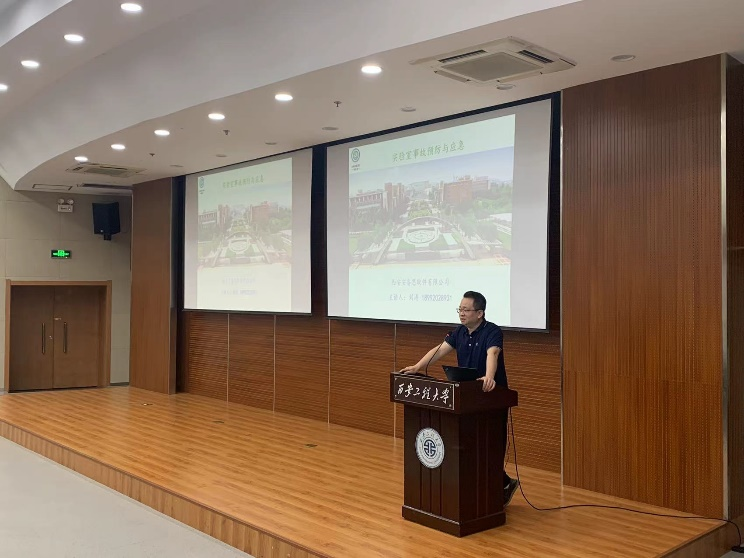 本次讲座特别邀请了西安安备思软件有限公司刘涛总经理,专门面向2023级新生作安全讲座。他结合自身长期在各高校实验室安全培训的经验,用生动的语言和鲜明的事例,从两个大的方面分别进行讲解。一方面从海因里希安全法则给大家引述了发生安全事故的四个因素,另一方面从实验室用电安全、用气安全、用水安全、危化品安全、消防安全、人员实际操作等具体内容进行相关讲解,全面细致的就实验室安全相关方面的危害、基础理论,事故预防措施,紧急处置方案等进行讲解。