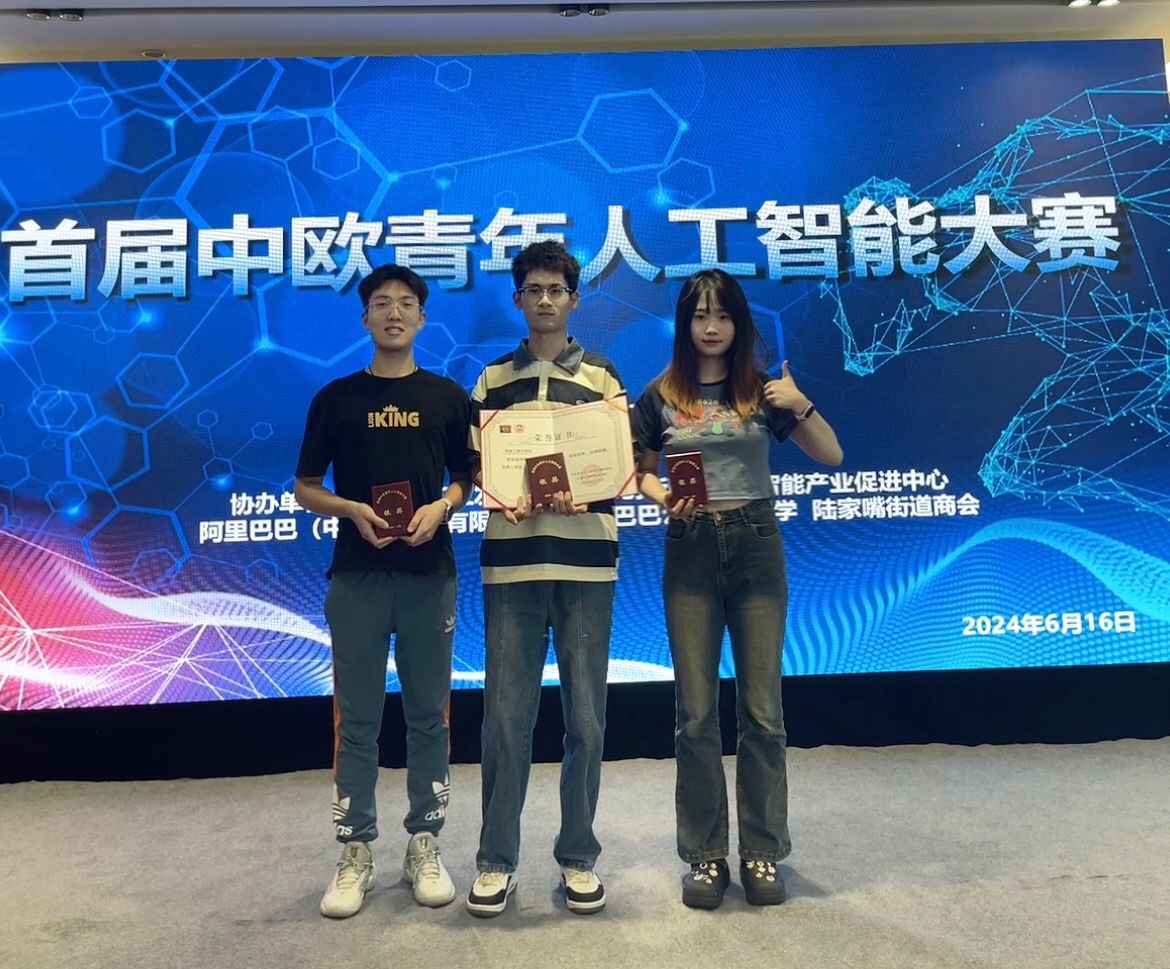 6月16日,首届“中欧青年人工智能大赛”在上海举办,PP电子电子信息学院学生严松、苏玟萱和杨金鹏荣获大赛银奖。