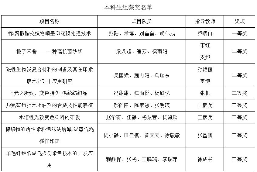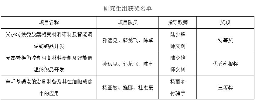 6月15日,第五届全国大学生绿色染整科技创新大赛在青岛举行,PP电子纺织科学与工程学院师生团队参加了比赛,并获研究生组特等奖1项、三等奖1项、优秀海报1项;获本科生组一等奖1项、二等奖2项、三等奖5项。