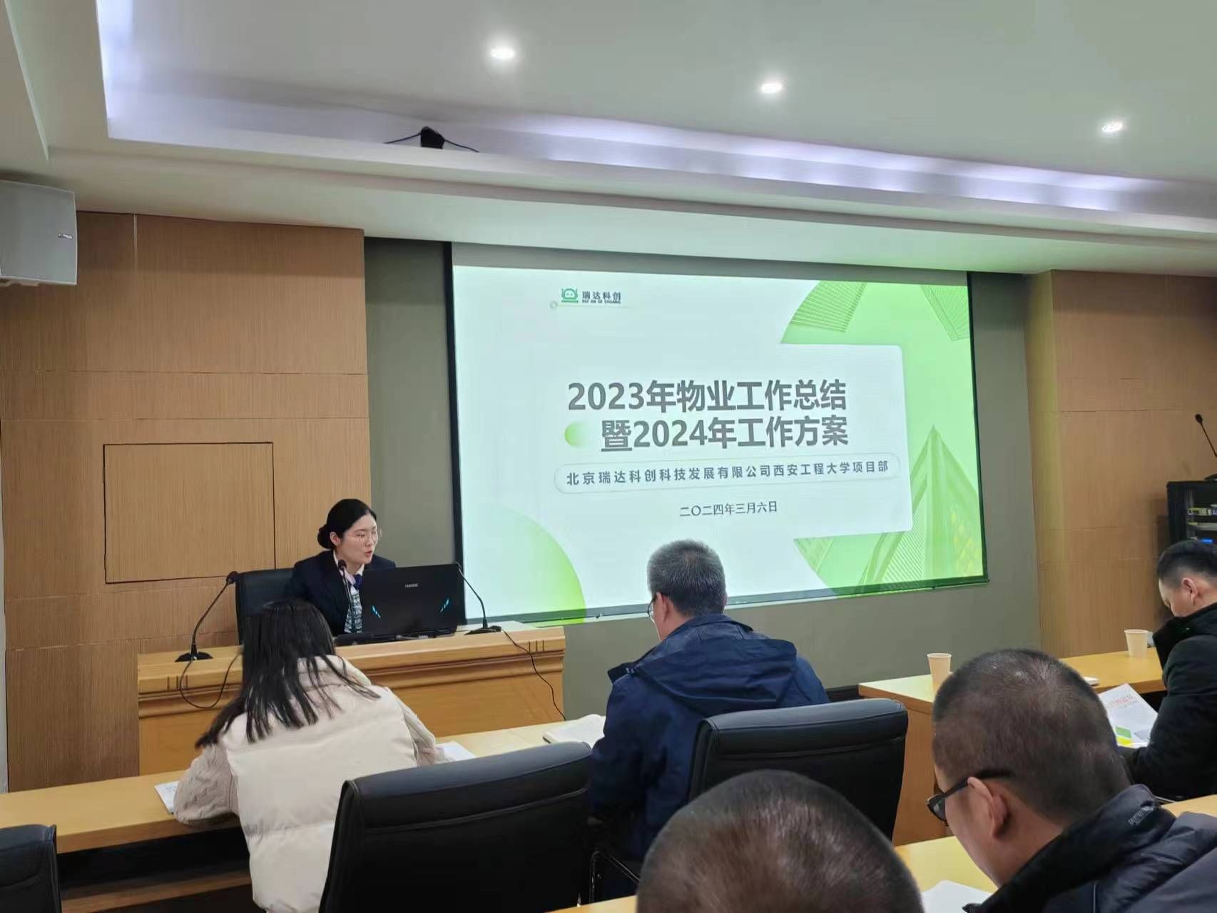 汇报环节,两校区物业公司项目部经理从团队建设、卫生保洁、校园绿化、零星维修、重大活动保障等方面对上一学期物业服务情况做了总结,并提出改进措施,同时就2024年服务质量提升提出具体方案。