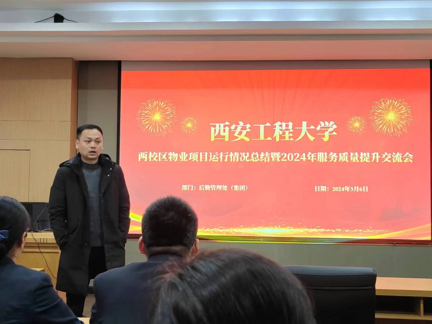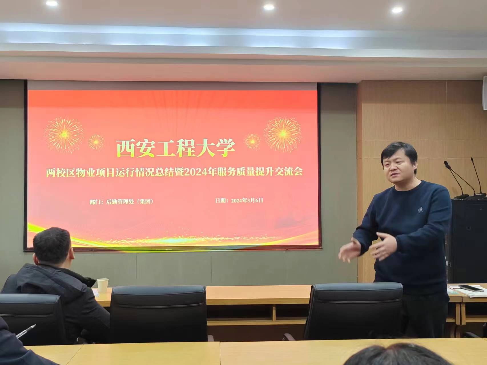 3月6日上午,PP电子后勤管理处(集团)在临潼校区组织召开两校区物业项目运行情况总结暨2024年服务质量提升交流会。后勤领导班子及物业管理服务中心人员、招标采购办公室主任戴新、国内合作与校友工作处石洋、校团委李梦琦,两校区物业公司参加了交流会。会议由后勤管理处(集团)党总支书记杨森主持。